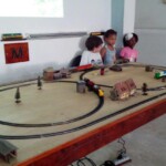 Uma das primeiras medidas a serem tomadas após ocuparmos, limparmos e arrumarmos o espaço foi receber a doação de uma maquete ferroviária de um dos nosso diretores e fundadores, o Edson Vander. Linda, com toda a ambientação, casinhas, estações, trilhos, faltando apenas reparar a parte elétrica, tarefa que o nosso querido e saudoso Luis Octávio executou juntamente com Carlos Assis. Infelizmente durante o transporte algumas peças voaram (!) no trajeto até a sede, mas nada que tirasse a sua beleza. Com todo o cuidado ela foi transportada para as oficinas do andar superior, onde foi iniciada a restauração.